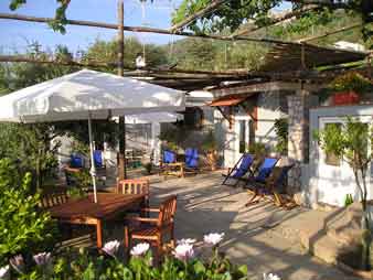 | B&B A Zoe is een familiaire B&B en bevindt zich in de zone van de vuurtoren vlakbij Annacpri op het eiland Capri in de Golf van Napels. Men biedt enkele mooie kamers, voorzien van eigen badkamers en keukenhoek (slechts te gebruiken voor het ontbijt) en uitgerust met airco, tv en kleine koelkast. U kunt gebruik maken van een fraai terras met citroenbomen en relaxen onder de pergola in de tuin vanwaar u prachtige uitzichten heeft over de zee en het eiland Ischia. Een bushalte vindt u op 50 meter. |